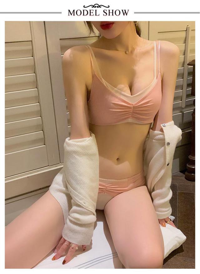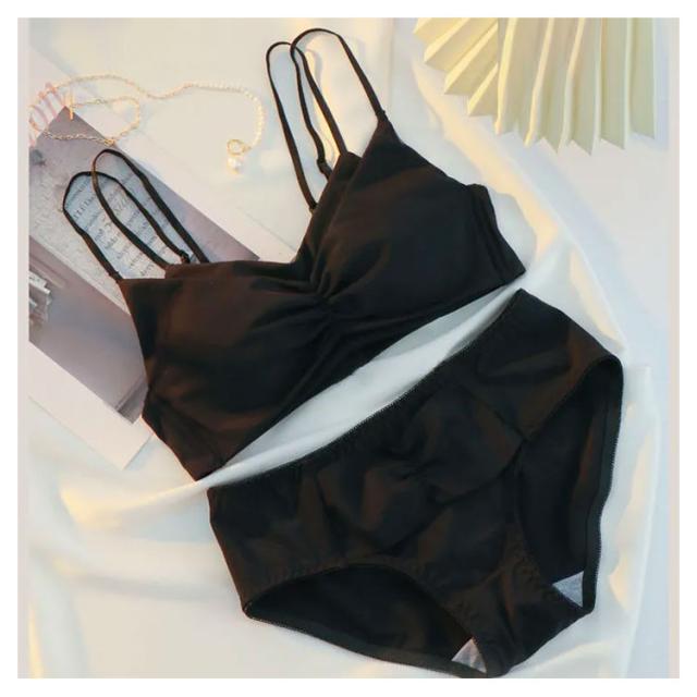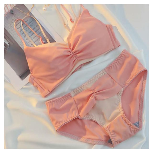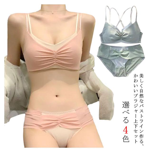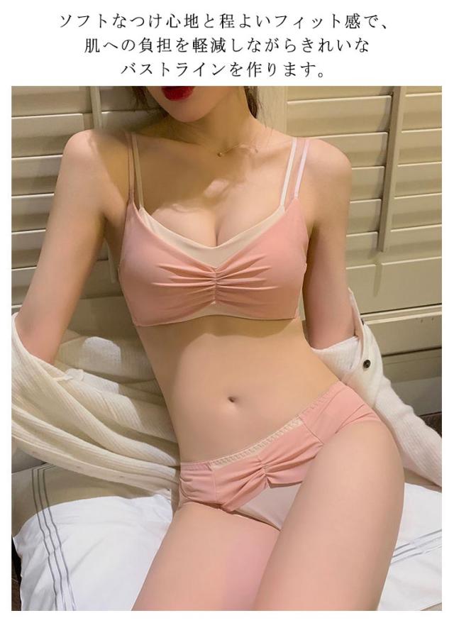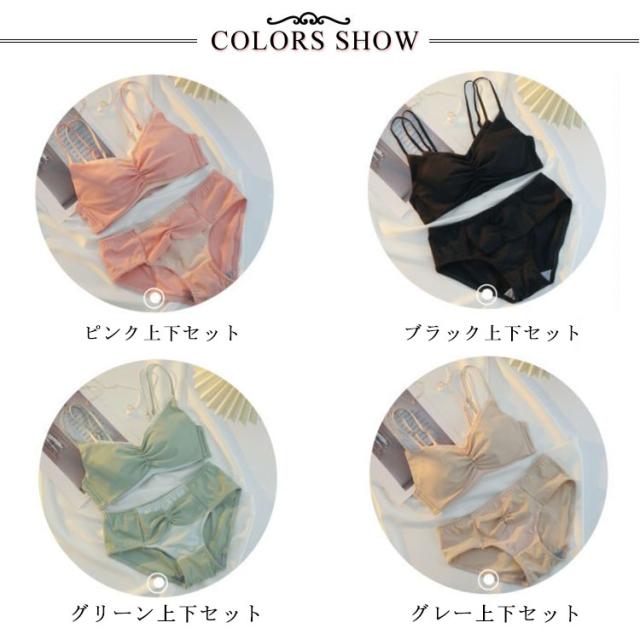 ストレスフリー 揺れない 上下セット 高校生 リボン かわいい おしゃれ ブラセット 無地 キャミソール ワイヤーなし レディース ノンワイヤー ナイトブラ パッド付き ショーツ シンプル 中学生 下着 痛くない 快適 インナー ブラジャー
