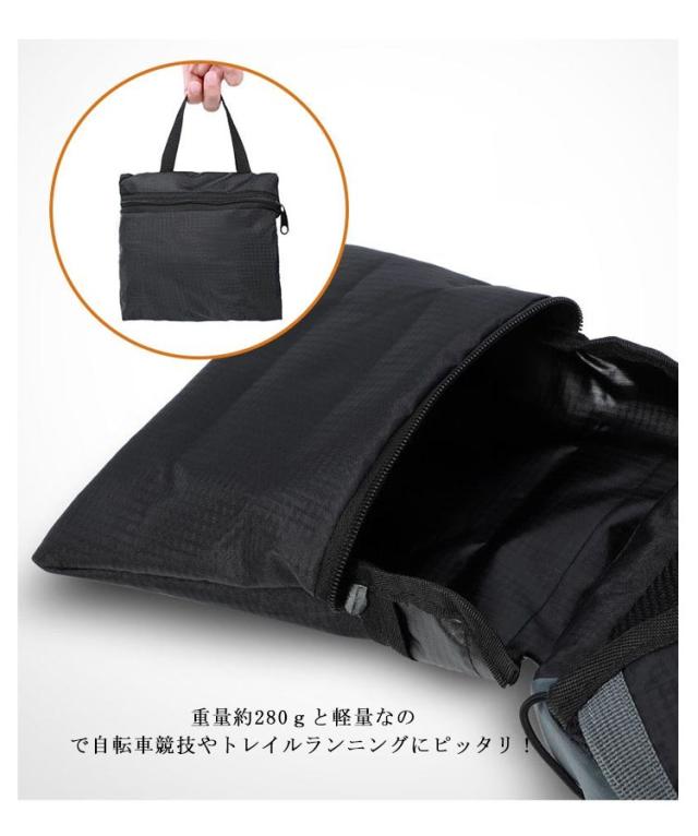 | 容量10Lのハイドレーションパック対応リュックです。 自転車競技やトレイルランニング 、登山をこれから始める方にオススメ! 雨水をしっかり弾く超撥水ナイロンを採用。 重量約280gと軽量なので自転車競技やトレイルランニングにピッタリ! 小さく折りたたむと、携帯性抜群の持ち手付きポーチに早変わりします。 | |