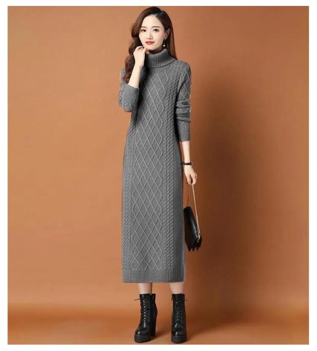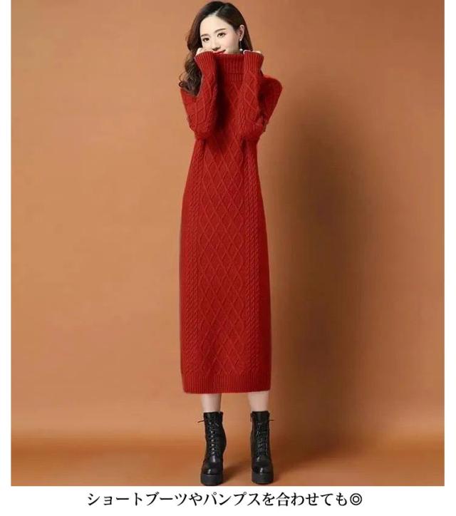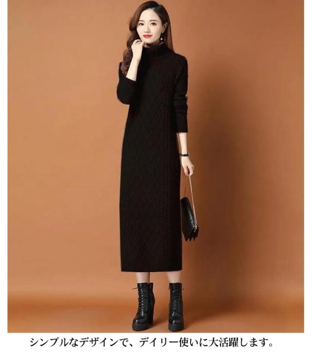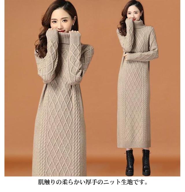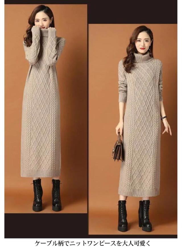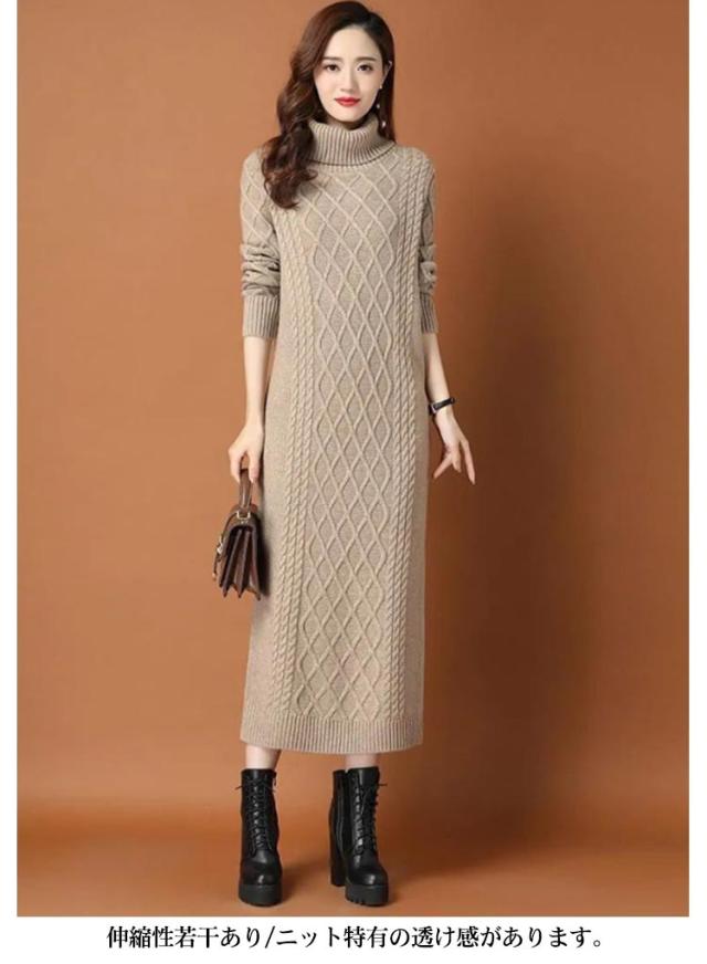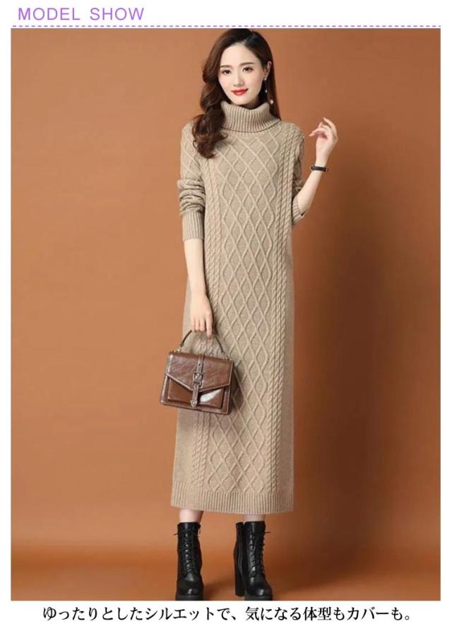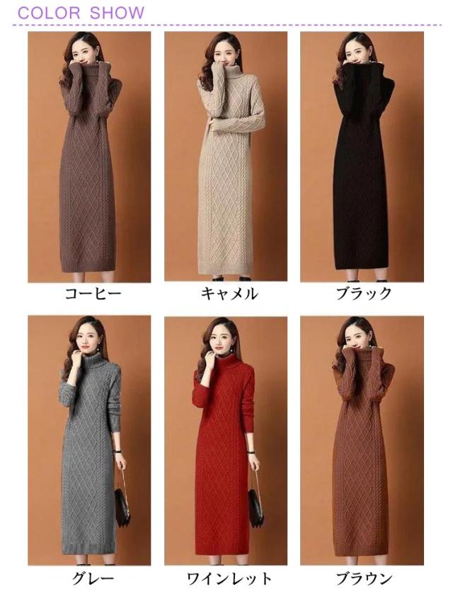 ロング丈 全6色6サイズ 秋冬 ロング ニット ニットワンピ 長袖 マキシ丈 ニットワンピース ニットセーター 大きいサイズ 春 ケーブル編み 体型カバー ゆるニットワンピース ルームウェア ワンピース