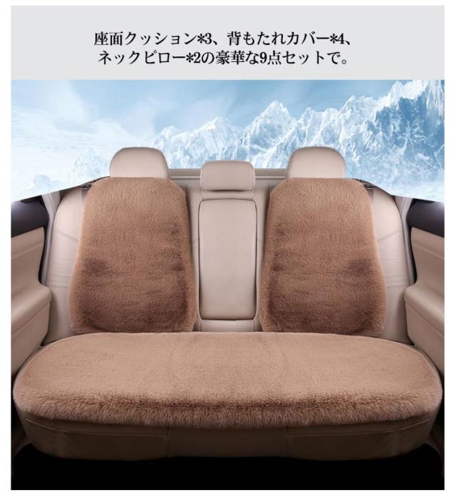 9点セット ふわふわ 後部座席 運転席 カーシートカバー 車用 シートカバーセット フェイクファー 長毛 助手席 カーマット ネックピロー 洗える もこもこ 車座布団 クッション 汎用 選べる9色