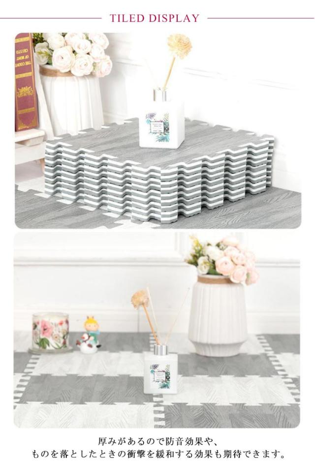 おしゃれ キッズマット 幅60cm 北欧 敷物 1.0cm厚 大判サイズ ベビーマット ラグ ジョイントマット プレイマット 防音 木目 フロアマット 木目調 カーペット 赤ちゃん 単色対応 断熱 抗菌防臭加工 サイドパーツ付 9枚入り かわいい おしゃれ シンプル 可愛い