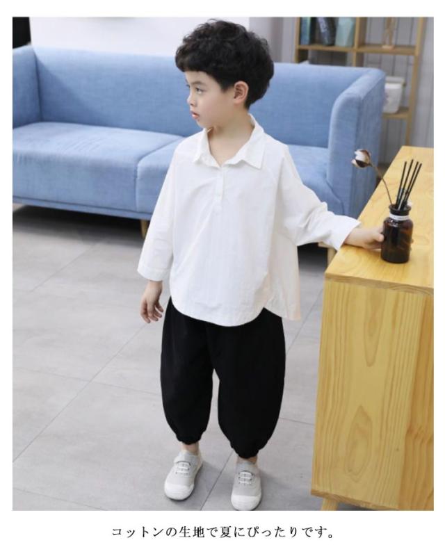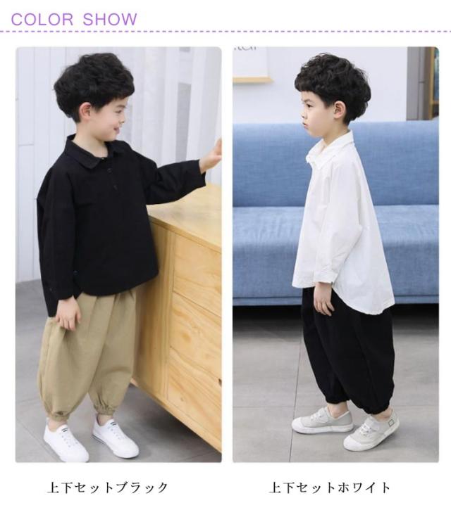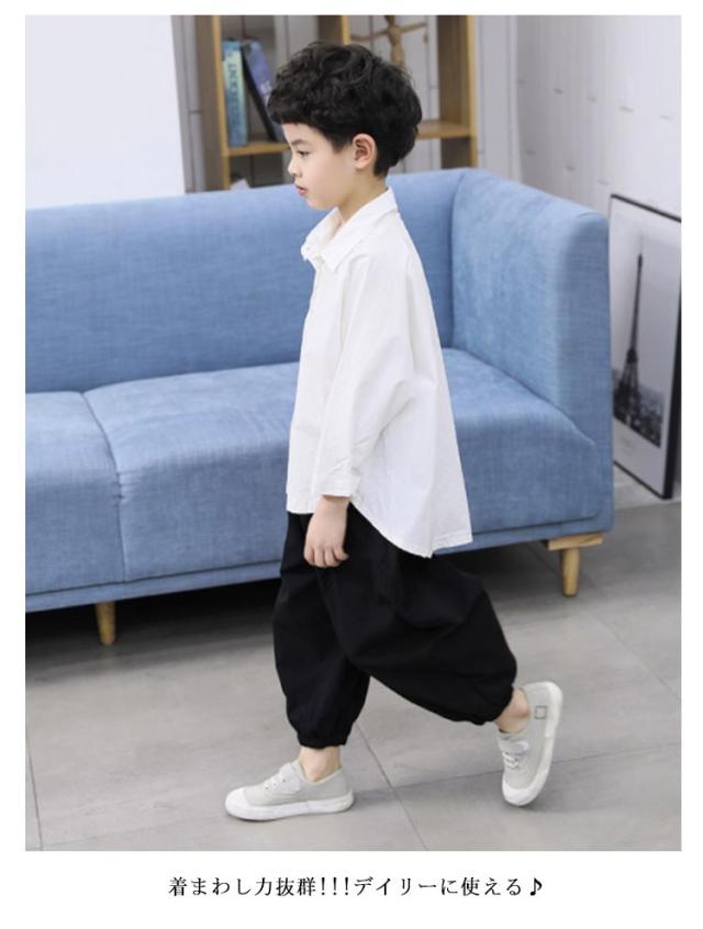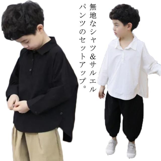2点セット セットアップ 男の子 長袖 120cm ワイドパンツ ガウチョパンツ 150cm シャツ 子供服 子ども服 お洒落 カジュアル ジュニア ゆったり 90cm 100cm 110cm サルエルパンツ 130cm 140cm キッズ服
