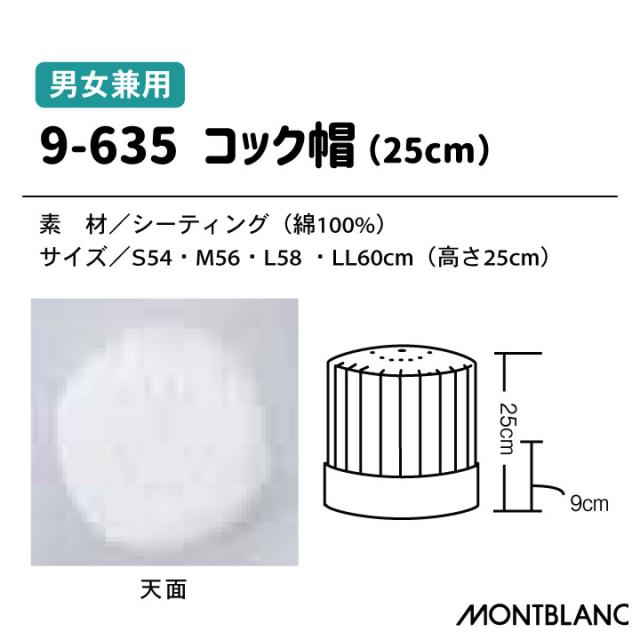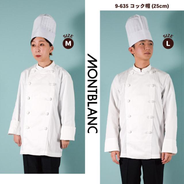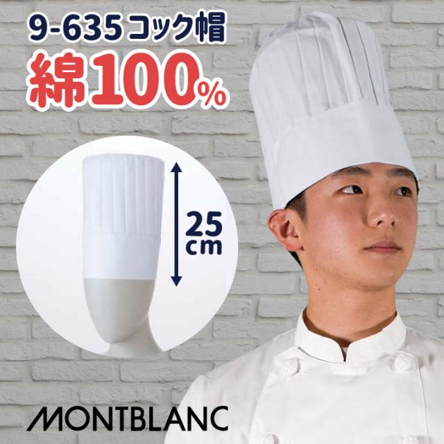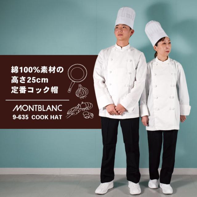 住商モンブラン 9-635 綿100%素材の高さ25cm定番コック帽 男女兼用