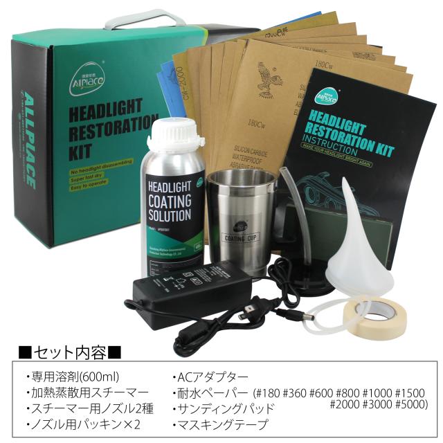 ヘッドライト コーティング スチーマー 200cm ACアダプター 黄ばみ 除去 Headlamp Remover allplace ヘッドライト クリーナー 【オールプレイス ヘッドランプリムーバー セット】 【2023】 【送料無料】