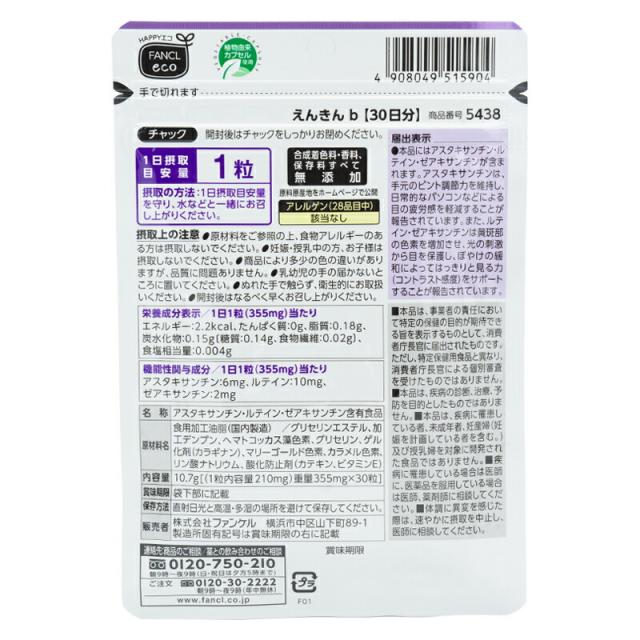 [3個セット]FANCL ファンケル えんきん 30日分 サプリメント 機能性表示食品 アスタキサンチン ルテイン ゼアキサンチン[ギフトラッピング対応]