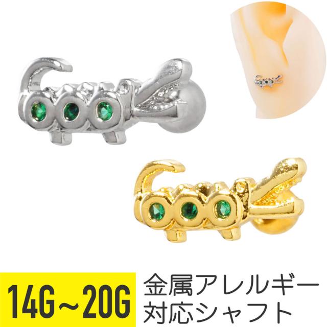 ワニ グリーン ジュエル ストレートバーベル 14G 16G 18G 20G サージカルステンレス ヘリックス 軟骨 ボディピアス 鰐 クロコダイル