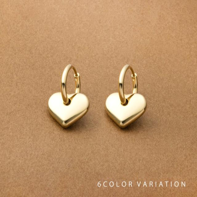 ぷっくりハートがアイコニックなキャッチレスピアス。メタル素材で甘くなりすぎず、大人可愛い印象に。モチーフを取り外せばシンプルなフープピアスとしても使える2WAYタイプです◎錆びにくいステンレス製でデイリーに活躍しそう。