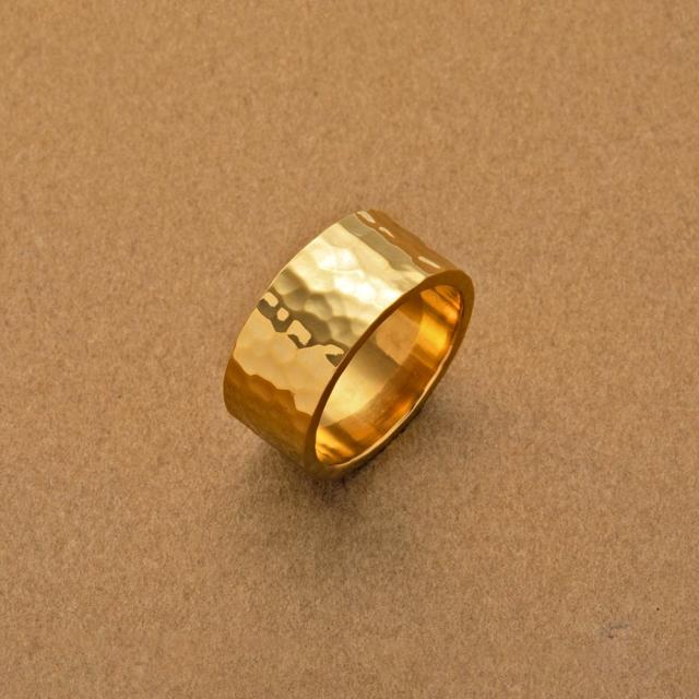 【ゆうパケットOK】ステンレス製 リング 指輪 金属アレルギー つけっぱなし サージカルステンレス レディース ワイド 幅広 たたき加工 12号 15号 17号 大人 シンプル ゴールド outlet