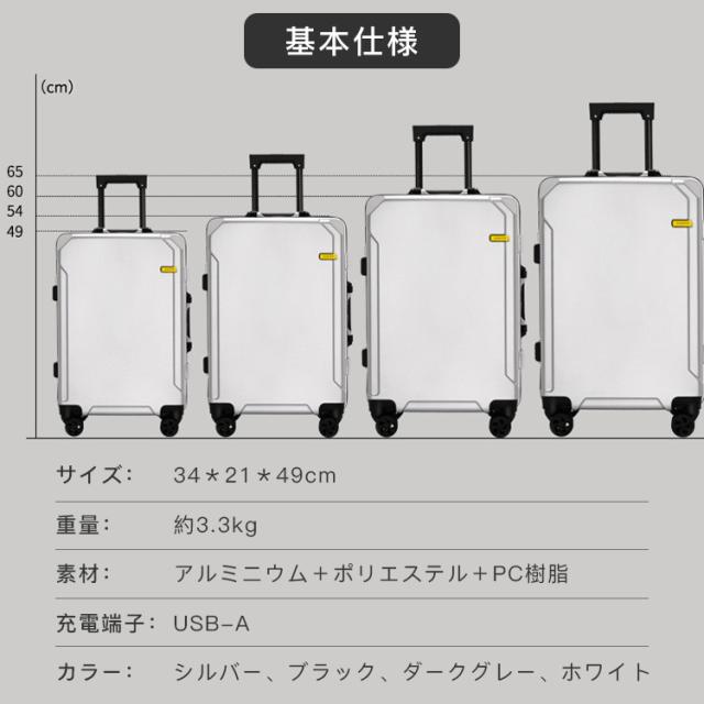 スーツケース 機内持ち込み Sサイズ アルミフレーム ハード USB充電 静音 小型 軽量 耐衝撃 ダブルキャスター ビジネス トランク キャリーケース おしゃれ