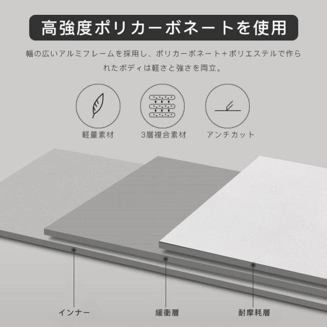 ・アルミフレームの採用とポリカーボネート+ポリエステルで実現した軽量と強度の両立