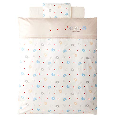 肌に触れる素材や縫製にこだわり、いつも清潔・快適にお使いいただける日本製のお布団です。 赤いりんごが大好き!元気いっぱいぞうさん柄です。