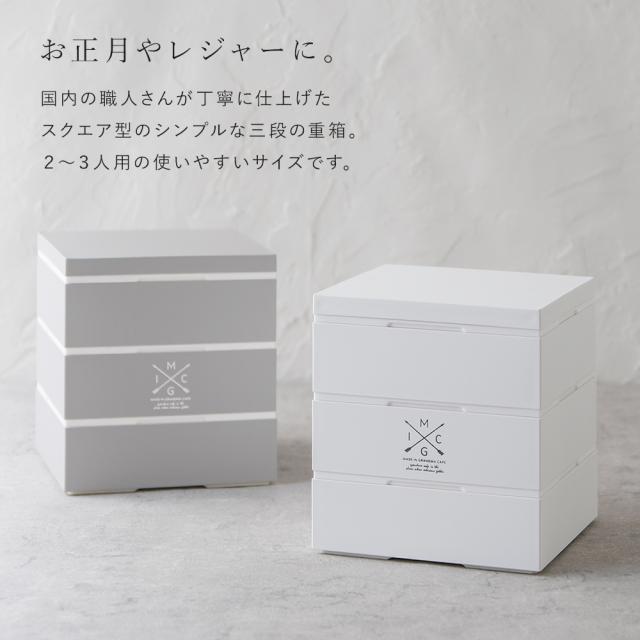 重箱 3段 スクエア シール中蓋付き お重箱 日本製 国産 運動会 お正月 お花見 行楽 ひな祭り お花見 子供の日 ピクニック レジャー弁当箱 おしゃれ スタイリッシュ ホワイト 白 グレー 春新作