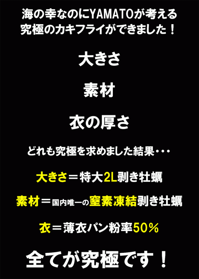 - ホントにスーパージャンボでした。 カキフライが大好きなので、揚げるだけになっているのは重宝します。 が、梱包が?運送が?雑で、トレイから殆ど外れて片寄っていたのでコロモが剥がれてるのが多々ありました。