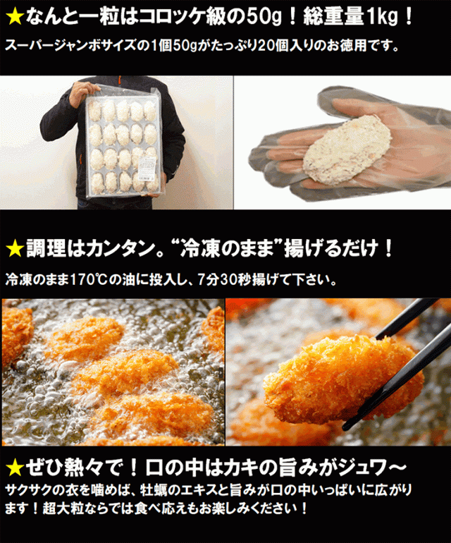 広島県産 スーパージャンボ・カキフライ 大粒50g×20粒 冷凍のまま揚げるだけの簡単調理 牡蠣 かき 惣菜 おつまみ 母の日 父の日