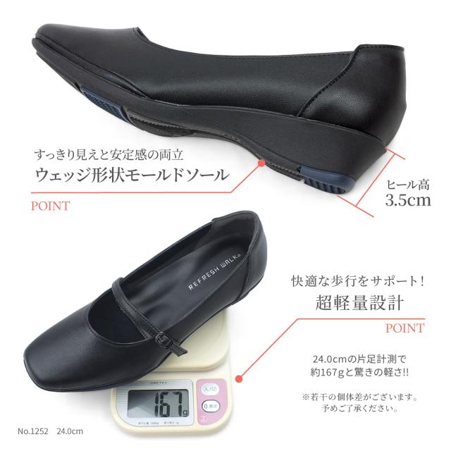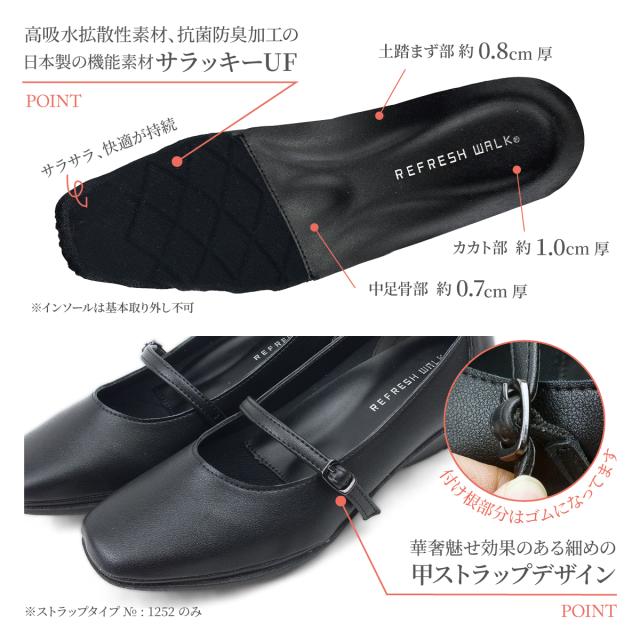 REFRESH WALK リフレッシュウォーク パンプス コンフォート 甲ストラップ 3E 幅広設計 超軽量 ウエッジソール 外反母趾 高屈曲 防滑 フォーマル オフィス 痛くない おしゃれ 歩きやすい プレゼント ギフト おしゃれ 安定感のあるコンフォート超快適フォーマルパンプス 125