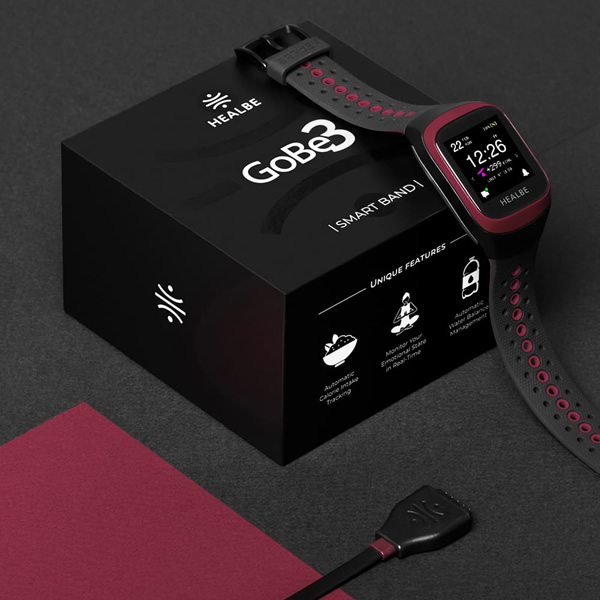 もうカロリー計算は不要!「摂取カロリー」、「水分バランス」「睡眠の質」「ストレスレベル」をはじめ、着ける人の身体の状況を自動で計測できるスマートバンド【GoBe3】があなたの健康をサポートします。