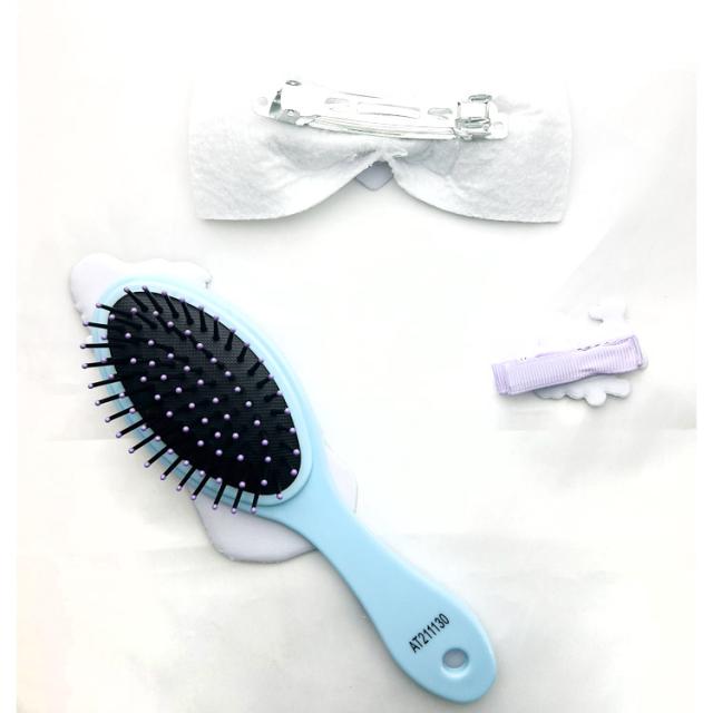 | セット内容 | ヘアブラシ(約18.5cm)・シュシュ(Φ約7.5cm)×2 ・リボンバレッタ ×1 ・ヘアクリップ×2 |