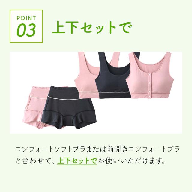コンフォートソフトブラまたは前開きコンフォートブラと合わせて、上下セットでお使いいただけます。