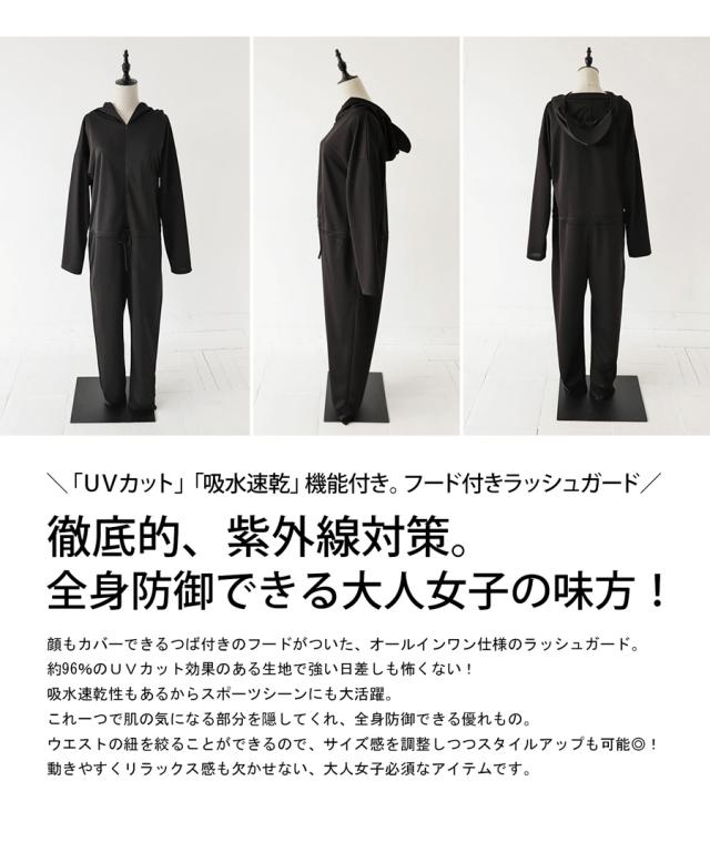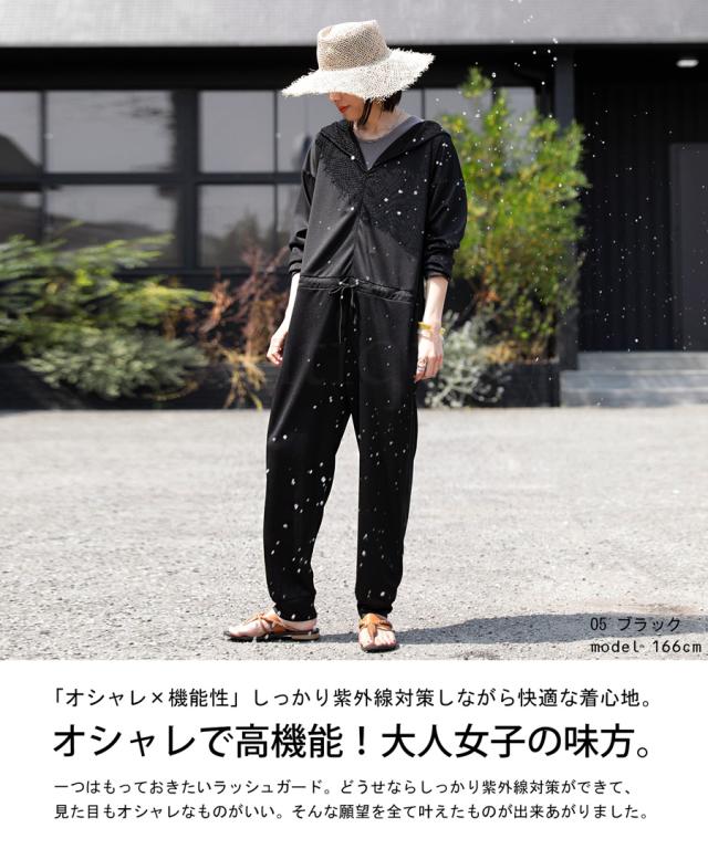 【検索ワード】ラッシュガード レディース オールインワン フード付き 水陸両用 UVカット 日焼け防止 吸水速乾 無地 長袖 長ズボン ゆったり ハイネック フード つば付き フーディー フロントジップ ファスナー ジップアップ ポケット付き 紫外線対策 リブ つなぎ サロペット サロペ 伸縮 ストレッチ 体型カバー ウエストマーク ドロスト アウトドア キャンプ フェス レジャー 山 海 川 プール 海水浴 水着 ママ水着 スイムウェア マリンウェア スポーツウェア フィットネス 旅行 通勤 通学 ランニング ヨガ 水遊び 川遊び ジョギング ジム トレーニング スポーツ 運動 トレーニングウェア 自転車 マラソン antiqua アンティカ 大人 おしゃれ 10代 20代 30代 40代 50代 60代 春 夏 オールシーズン お洒落 カジュアル かわいい かっこいい あんてぃか