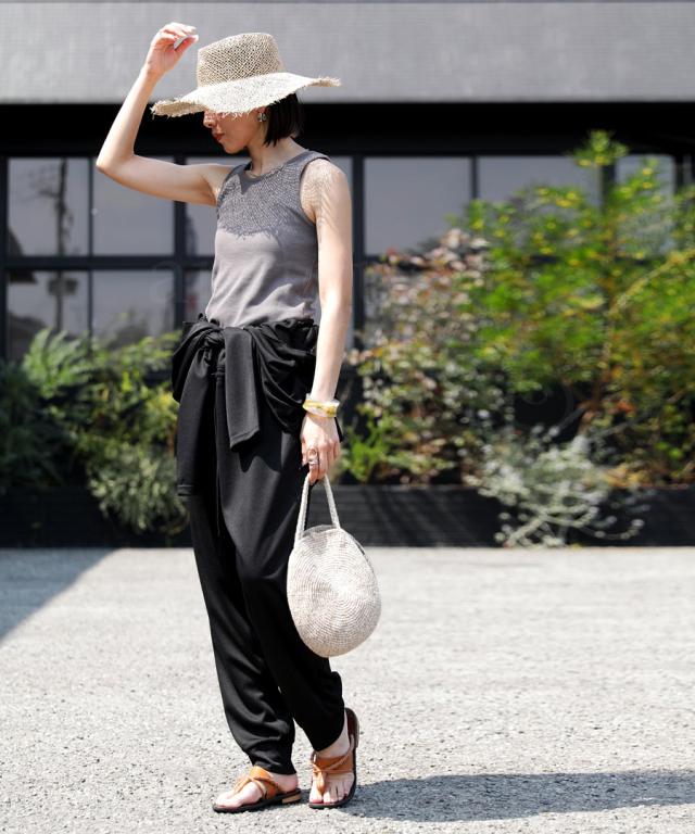 ・ウエストの紐でサイズ調節可能。