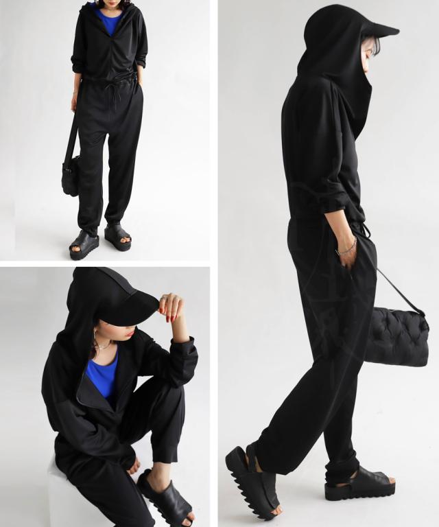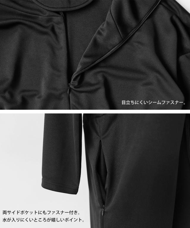ps-00462 水陸両用 UVカット 日焼け防止 吸水速乾 無地 長袖 長ズボン ゆったり ハイネック フード つば付き ジップアップ ポケット付き リブ つなぎ サロペット 伸縮 ストレッチ