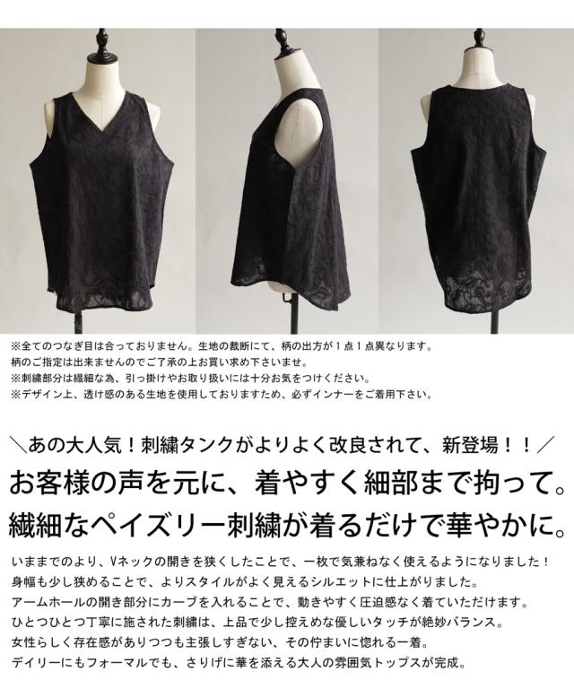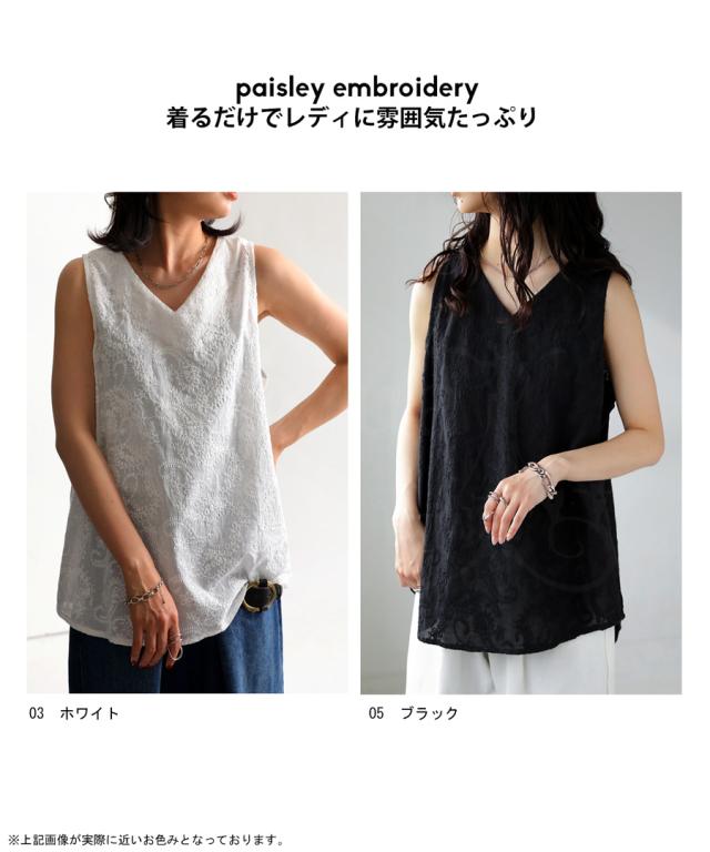 ペイズリー柄 刺繍タンク タンクトップ レディース トップス・再入荷 (50)メール便可