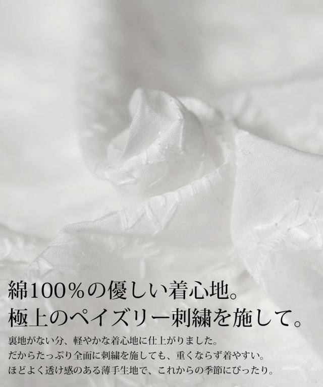 繊細なペイズリー刺繍が着るだけで華やかに。