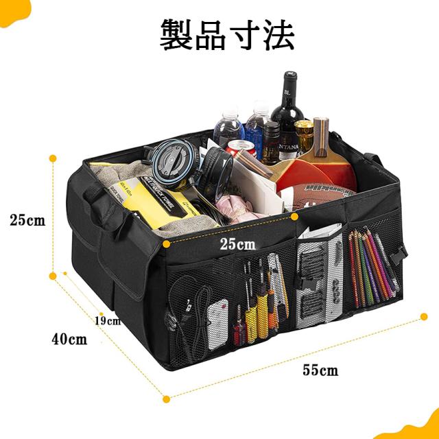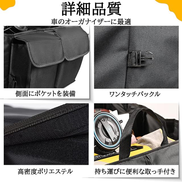 【高品質生地】トラックやSUVなどの大型車向け(普通車にも使用可能)で、大きなカバーが座席と床を保護。車のトランク内の荷物をまとめて整理できる、トランク内用の収納ボックスです。散乱しやすい荷物を、分かりやすく整理して収納することができます。買い物袋、食料品、地図、工具、洗車用品などの収納に大変便利!