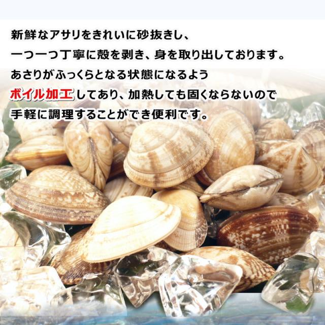 砂抜きをしたアサリの身を、ふっくらとボイル加工した商品です。