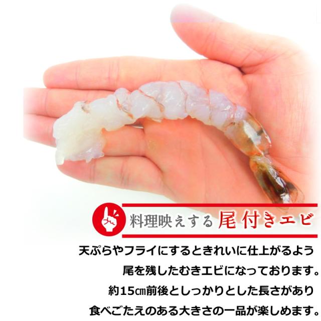 海老天や海老フライに便利な「尾付き+殻剥き処理済み」!