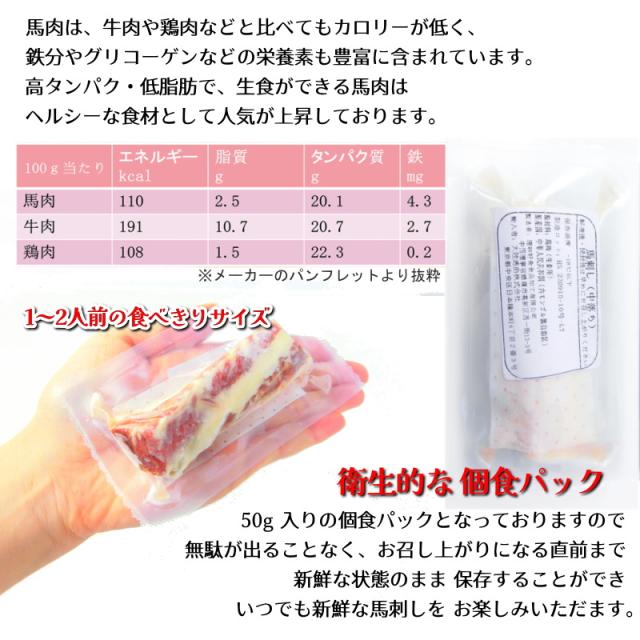 生食用 馬刺し 中落ちカルビ 50g×10個パックセット (500g) 馬刺 馬肉 桜肉 中落ち カルビ 使いやすい1人前パック ・馬刺【中落ち】10P・