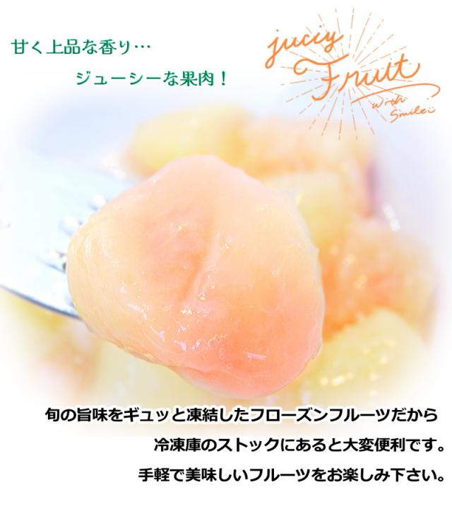 完熟の白桃を、皮むきして一口サイズにカットした冷凍果実です。