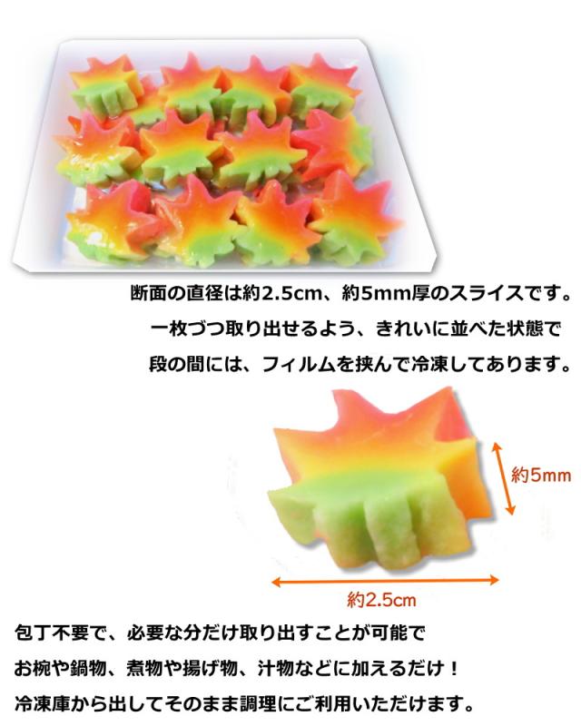 「赤もみじ麸」をスライスした冷凍タイプのカット生麩です。