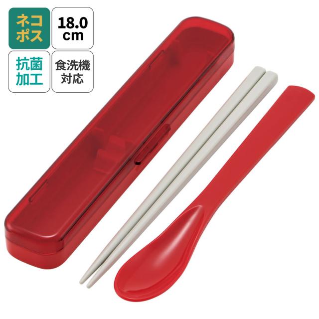 抗菌 音の鳴らない お箸 スプーン セット 18cm スケーター CAC1AAG チェリーレッド 赤 色【お弁当 ランチ グッズ ハシ はし 匙 セット 箸 スリム コンビ セット】