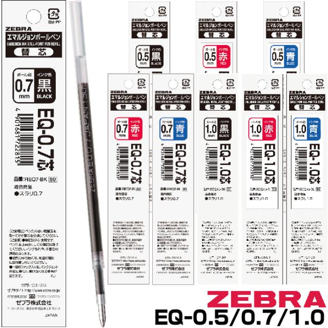 ゼブラ、エマルジョンボールペン替え芯、EQ-0.5芯・EQ-0.7芯・EQ-1.0芯です。