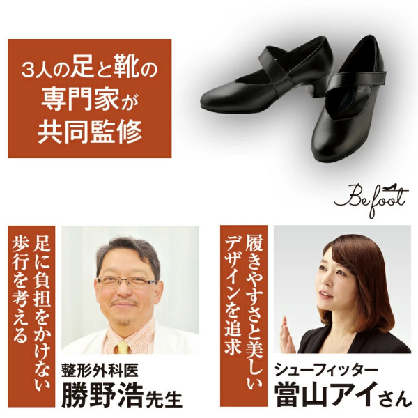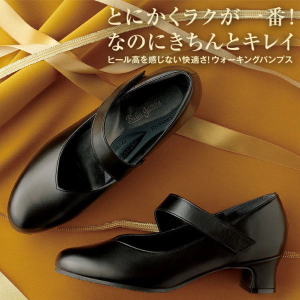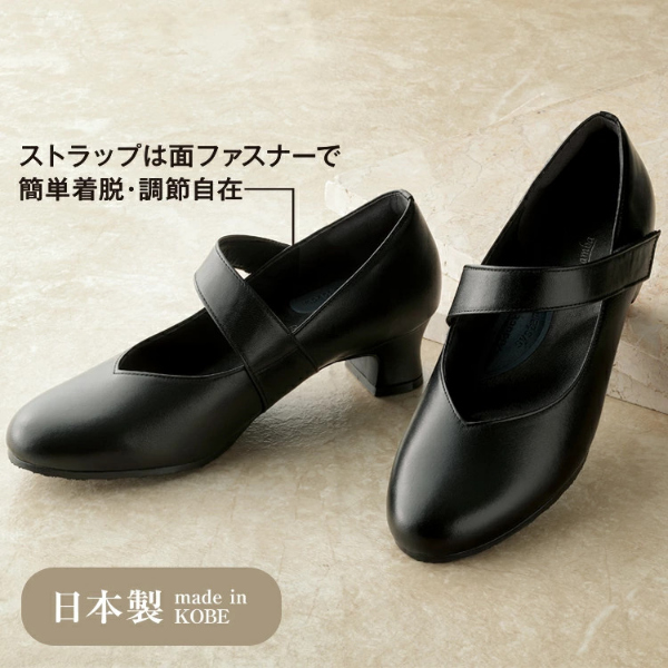 ■楽に歩けて、長時間履いても痛くならないパンプスを探している方■外反母趾で、ヒールの靴は履けないと諦めている方■整形外科医・シューフィッター・靴職人、プロフェッショナル3人の知識と技を取り入れた逸品■太めのベルトがしっかりと甲を支え、前滑りを防止。つま先が痛くならない■勝野先生考案の疲れにくいインソールで、脚の疲れを軽減■シューフィッタープロデュース、4Eなのに足をキレイに見せる、Vカット・ななめストラップのデザイン■神戸の靴職人による、一つ一つ丁寧に作り上げた高級牛革使用の手作りパンプス。オーダーメイドの様な履き心地