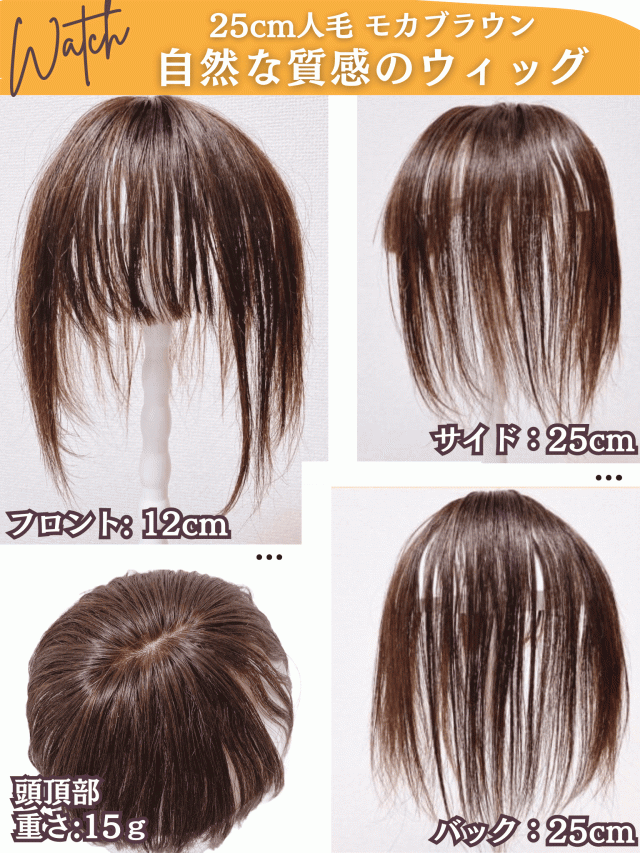 部分ウィッグ ヘアピース ポイントウィッグ 女性 レディース 人毛100% かつら ウィッグ ショート トップピース トップカバー トップウィッグ ストレート 前髪ウィッグ 人毛 つむじ 頭頂部 白髪カバー 自然 白髪隠し カバーウィッグ 人工毛 Luce brillare ルスブリラーレ