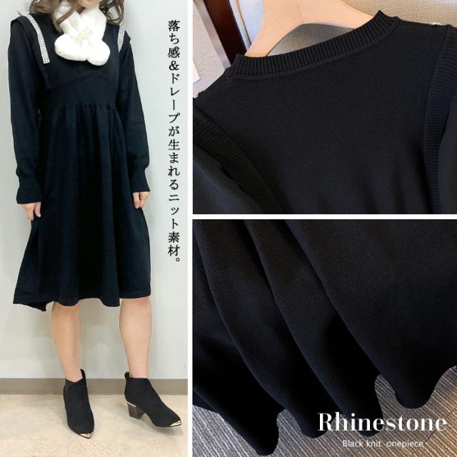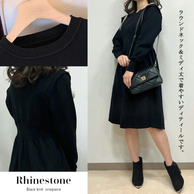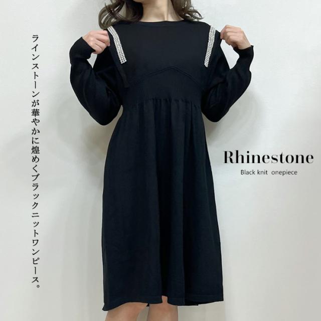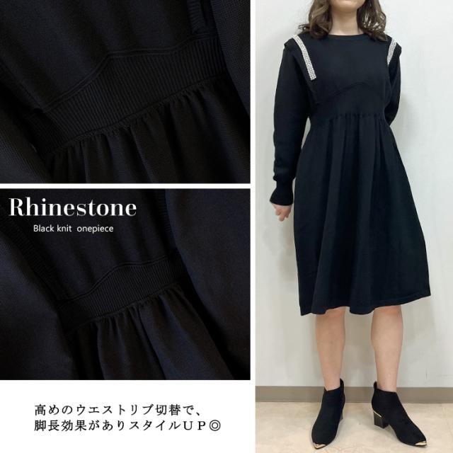 ラインストーンつきニットワンピース