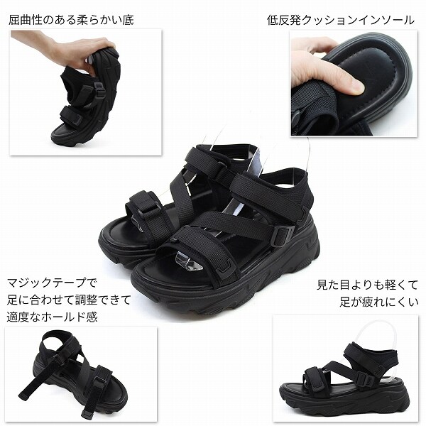 【SS~LL】厚底アシメベルクロダッドスポーツサンダル
