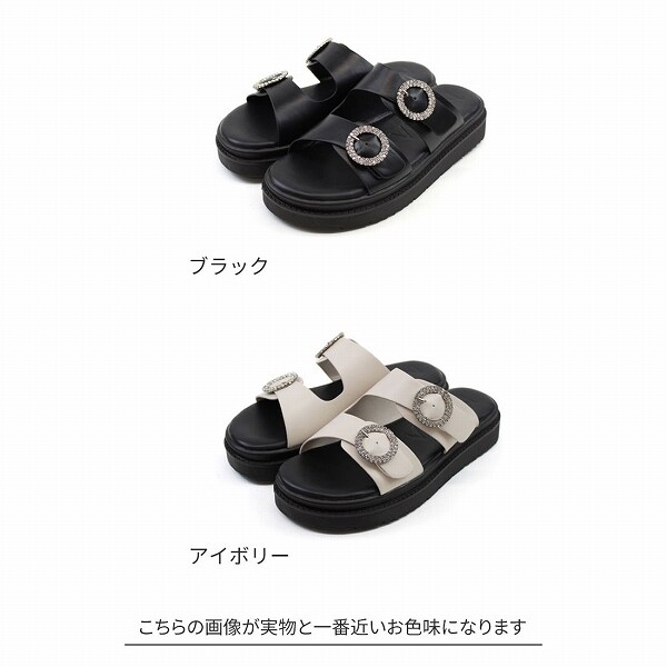 ヴィヴィアン(Vivian)/厚底ダブルビジューバックルサンダル