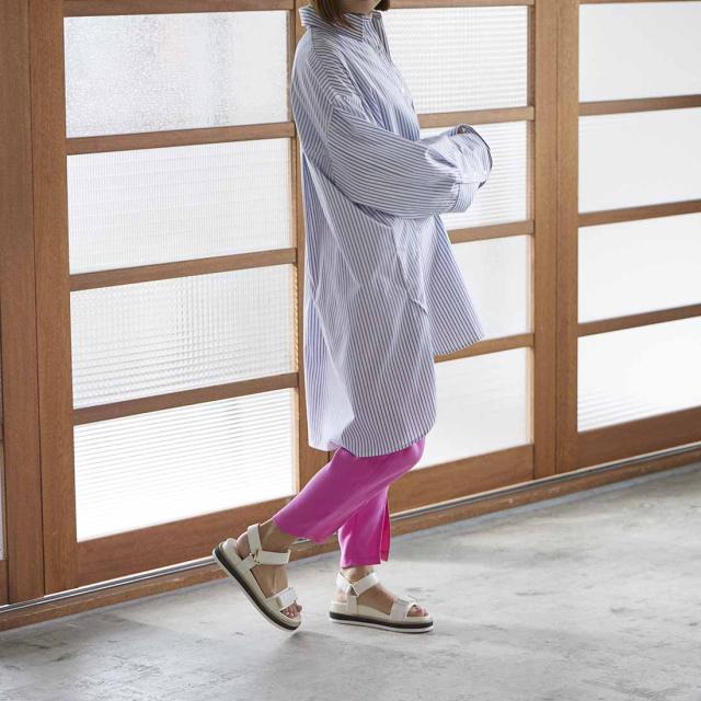 華やかな印象のサンダルなのでカジュアルスタイルだけではなく、レディスタイルにもマッチ。
