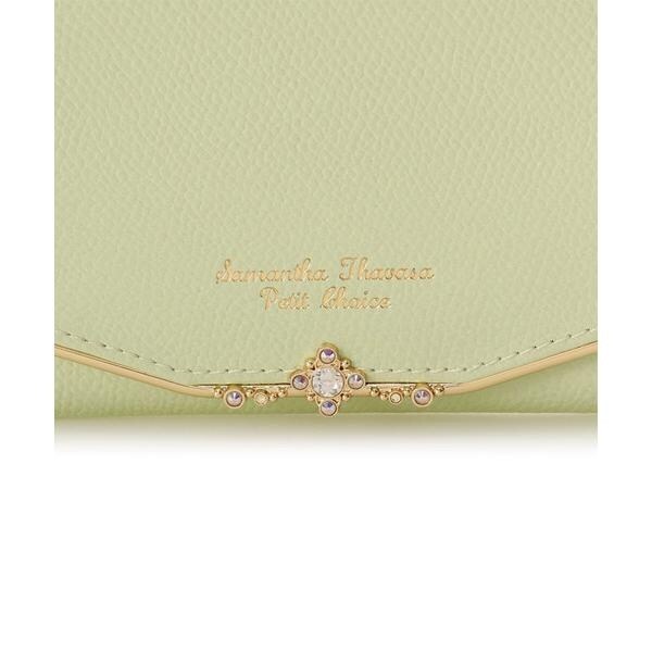 ◇Samantha Thavasa Petit Choice(サマンサタバサプチチョイス)のジュエルバーL字型ジップ折財布大人気のビジューバーシリーズから新色の登場。エレガントなビジューモチーフがあしらわれたシリーズ。ラグジュアリーなストーンと繊細なラインがまるで宝石のようなシリーズです。ゴールドのバーが上品さと女性らしさを引き立ててくれます。可愛いけど可愛すぎない、大人の女性にぴったりです。優しい穏やかな気分になれるような仕上がりに♪人気トレンドカラーのピスタチオグリーン・大人顔ピンク・少し暖かめなブルーと上質なグレージュのカラー展開です。