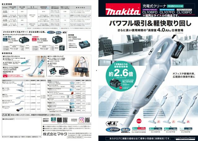 マキタ 充電式クリーナ CL108FDSMW バッテリBL1040B+充電器DC10SA付 コードレス 10.8V対応 makita オリジナルセット品 在庫