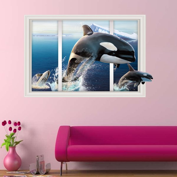 ウォールステッカー アニマル 動物 ステッカー 窓 シャチ 海 壁紙 3D トリックアート シール 子供部屋 窓 DIY 海底 海中