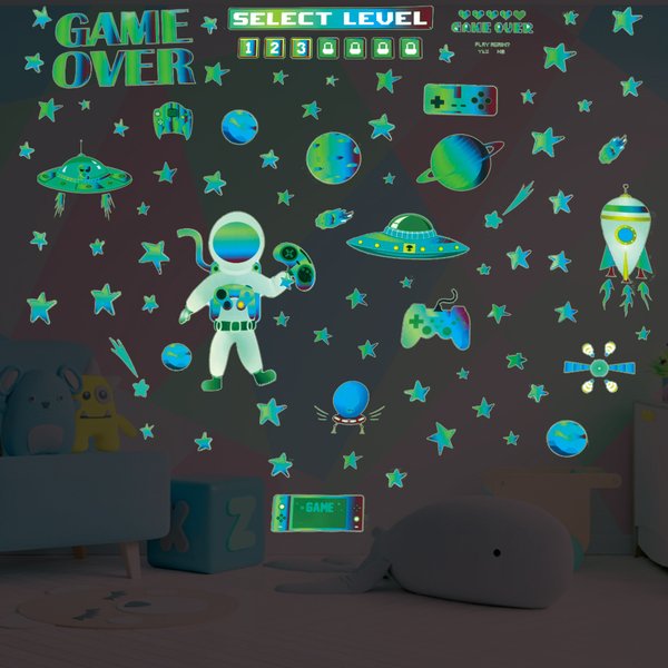 暗闇で光る☆蓄光 01 ゲーミングデザインset グリーン 宇宙 ゲーム アイコン ウォールステッカー 壁 天井 シール リメイク DIY