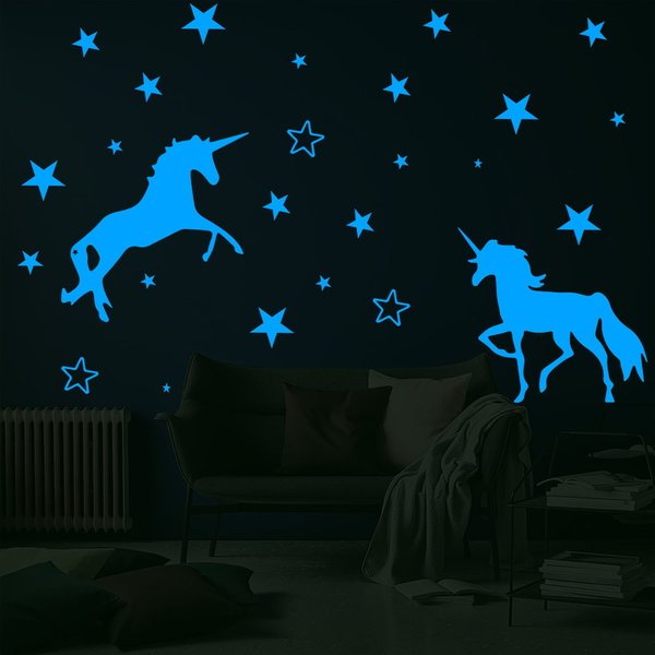 暗闇で光る☆蓄光 ユニコーン スター set 01ブルー ウォールステッカー 壁 天井 シール リメイク DIY