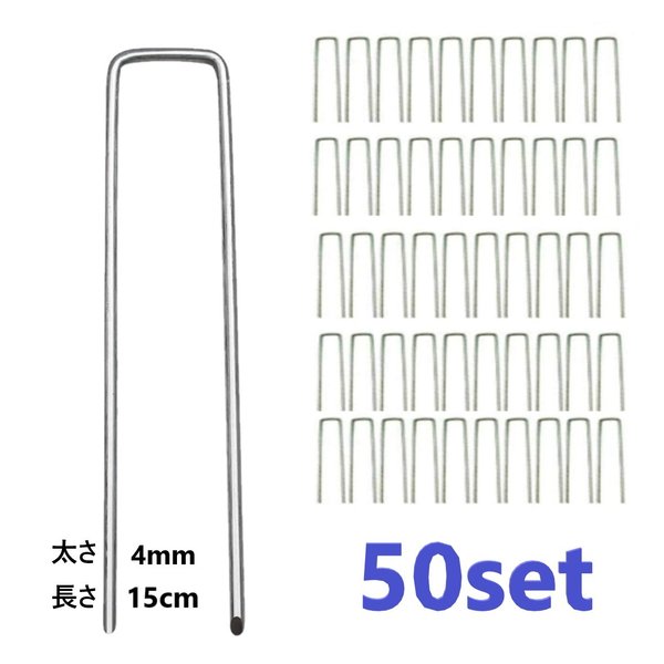 50個入 太め Uピン杭 固定用 人工芝 防草シート アンカー 4mm厚 15cm Uピン 杭 釘 剣先