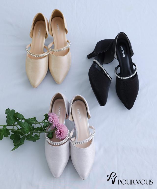 スワロフスキーデザインパンプス【525231120】20代・30代・40代・50代パーティーシューズ・痛くないパンプス・ローヒール・太ヒール・ピンヒール・ヒール・レース・ラメ・デザインヒール・フォーマル・大きいサイズなど・即日発送・送料無料・結婚式・婚活・披露宴・顔合わせ・二次会・同窓会・お呼ばれ・食事会・謝恩会・親族・七五三・お宮参り・冠婚葬祭・弔事・女子会・デート・入学式・卒業式・入園式・卒園式・ママ・マタニティー・セレモニー・セレブ・パーティー