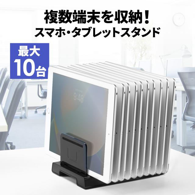 タブレット スマートフォン用スタンド 10台収納 連結可能 リモコン ルーター モバイルバッテリー 整理整頓 ブラック[200-STN072BK]