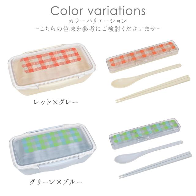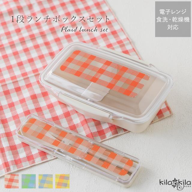 ランチボックス セット 2点セット おしゃれ お弁当箱 一段 長方形 チェック柄 電子レンジ対応 食器洗い機対応 500ml お箸セット かわいい 女子 通勤 通学 弁当箱 チェック 仕切り 日本製 プレゼント ピクニック 遠足 ハイキング 秋新作
